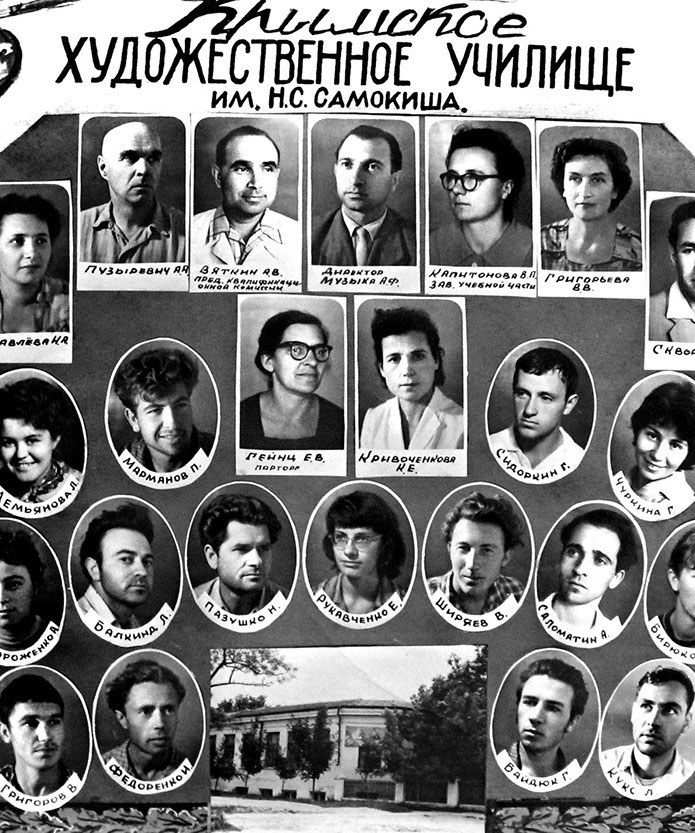 26. Вывод о переезде в новое здание в апреле 1960 года можно сделать на основе Приказа по Крымскому художественному училищу имени Н. С. Самокиша о премировании и благодарностях № 33 от 30.04.1960 г., согласно которому 44 человека были поощрены за переезд и субботник по уборке территории училища.