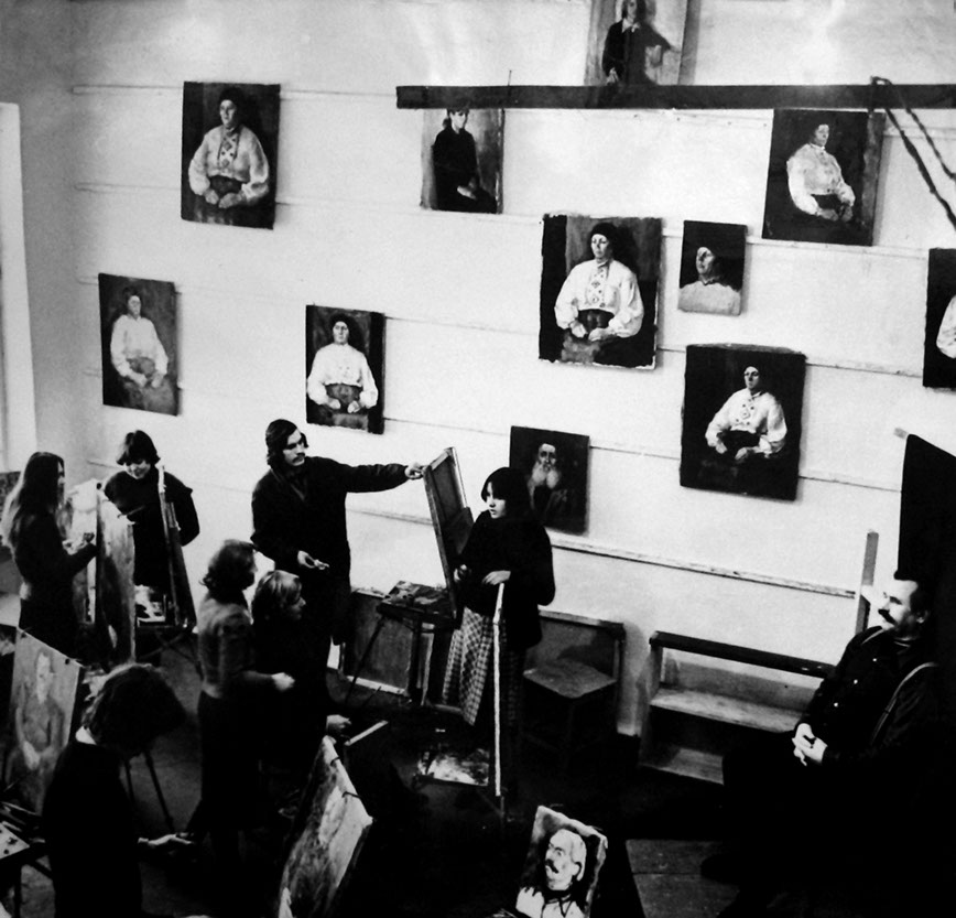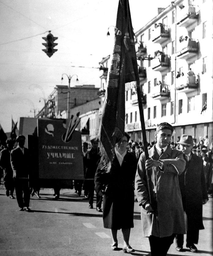 50-е годы ХХ века – время активного роста, общего подъёма училища как в вопросах постановки учебно-воспитательного процесса, так и во всей общественной жизни коллектива. Если до сих пор только несколько ведущих преподавателей направляли учебный процесс, то теперь началась работа коллектива, вооружённого твёрдыми знаниями и боровшегося за передачу этих знаний учащимся. Преподаватели специальных дисциплин были активными членами Союза художников, поэтому связь училища с Союзом была повседневной. В педагогический коллектив влились новые педагоги, только что закончившие лучшие высшие учебные заведения страны. Все они были молоды и энергичны. Все прошли через войну – фронтовики, партизаны, медработники, блокадники… Всех объединяла не только специальность, но и активное желание много и настойчиво трудиться над ростом профессионального уровня, над воспитанием молодых кадров.